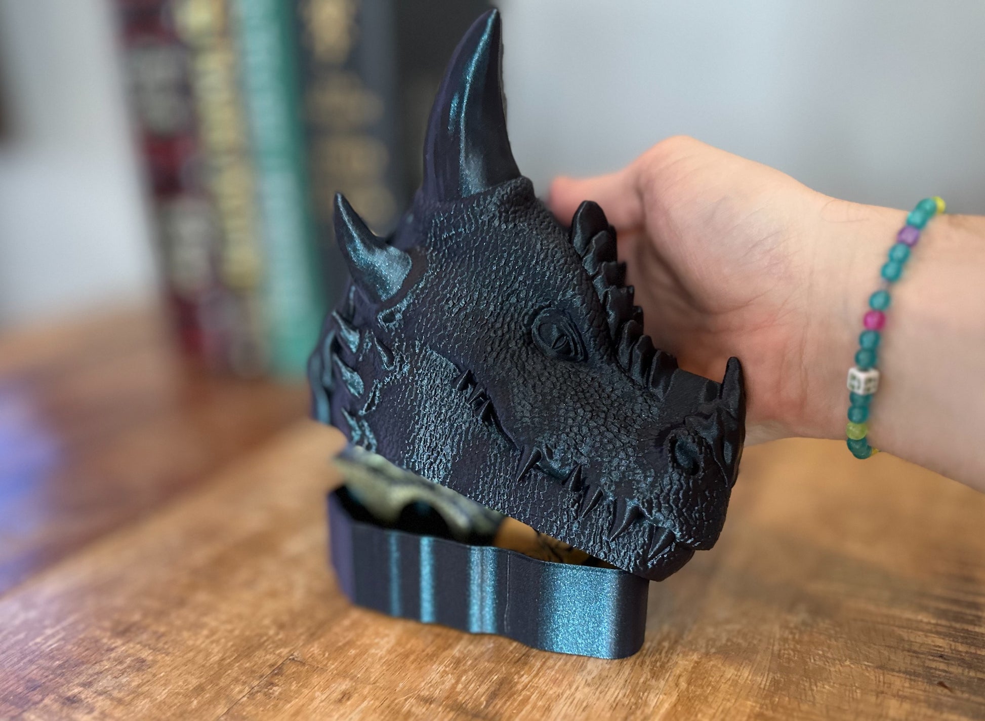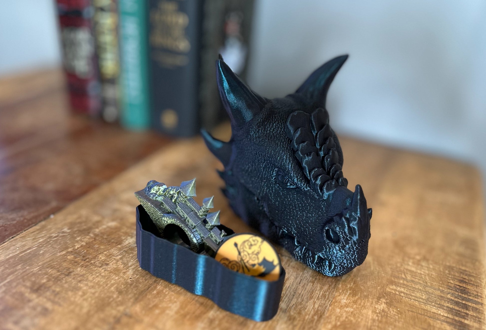 3D-printet med detaljer som gir en realistisk og kraftfull drage-look. Lages på bestilling for å sikre høy kvalitet og unik finish.