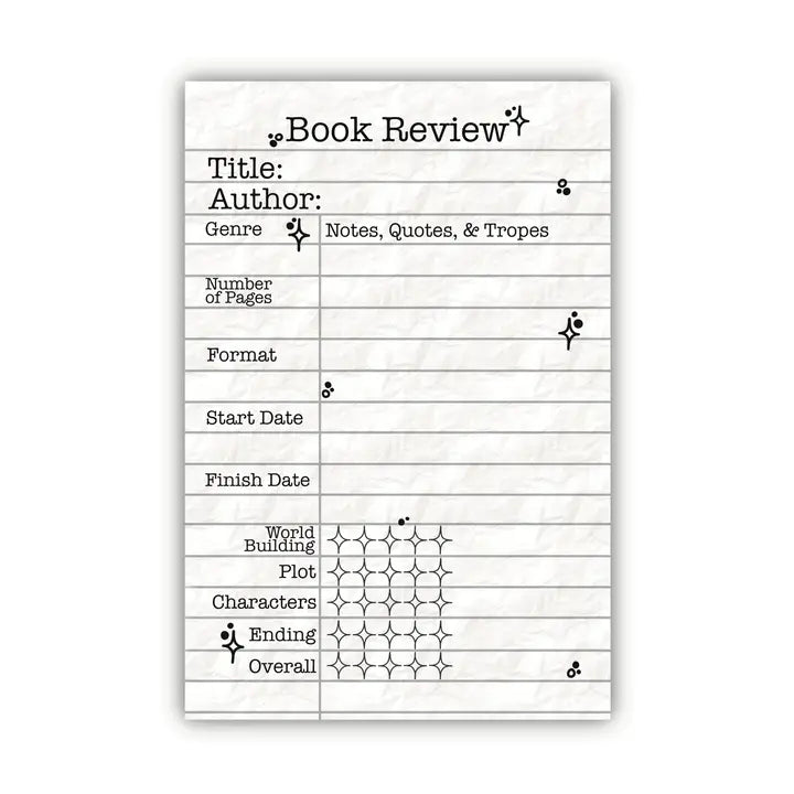 Denne 10x15cm-notisblokken for bokanmeldelser er den perfekte notisblokken for enhver bokelsker å notere ned tankene sine om den siste leseopplevelsen.