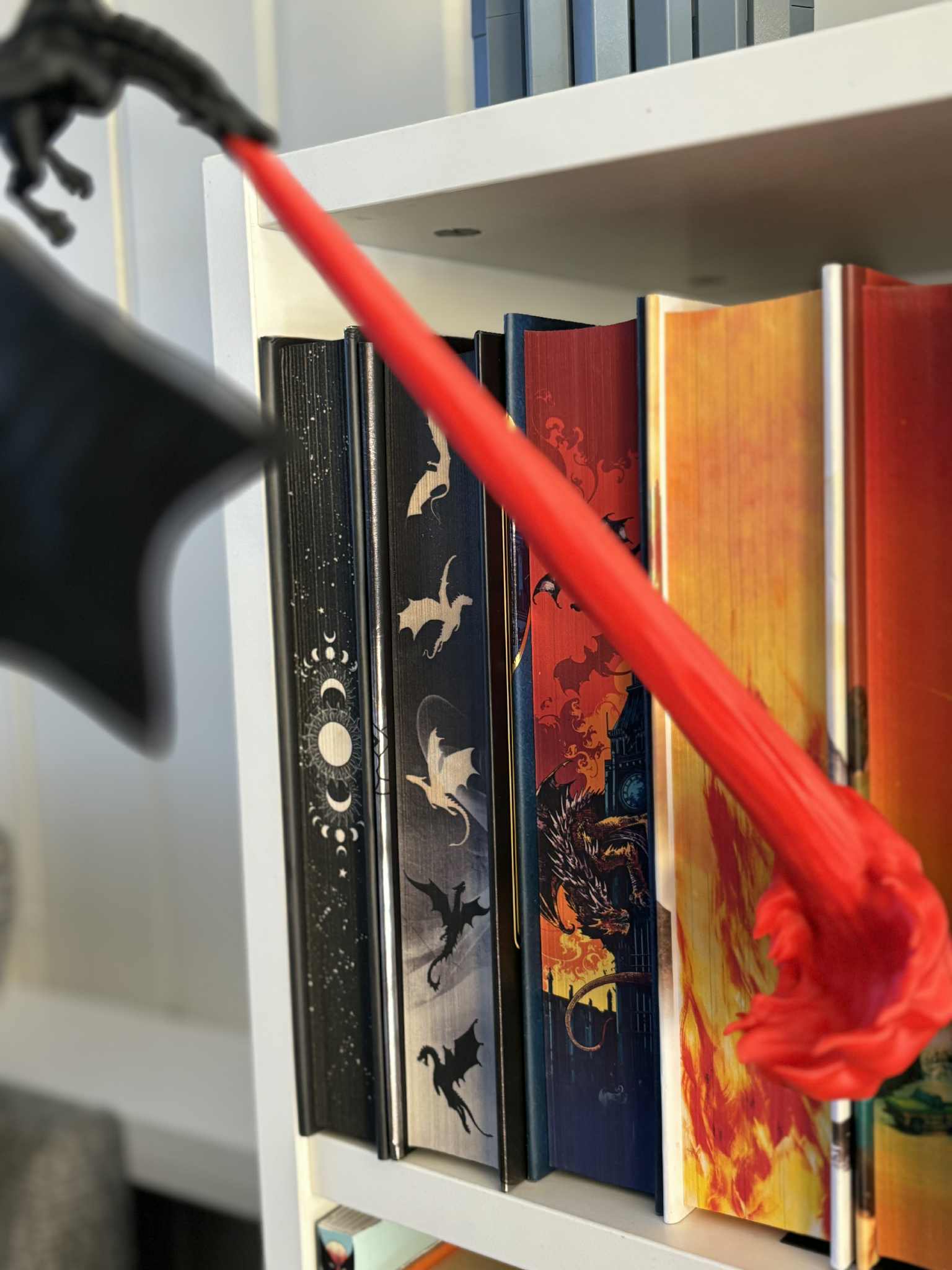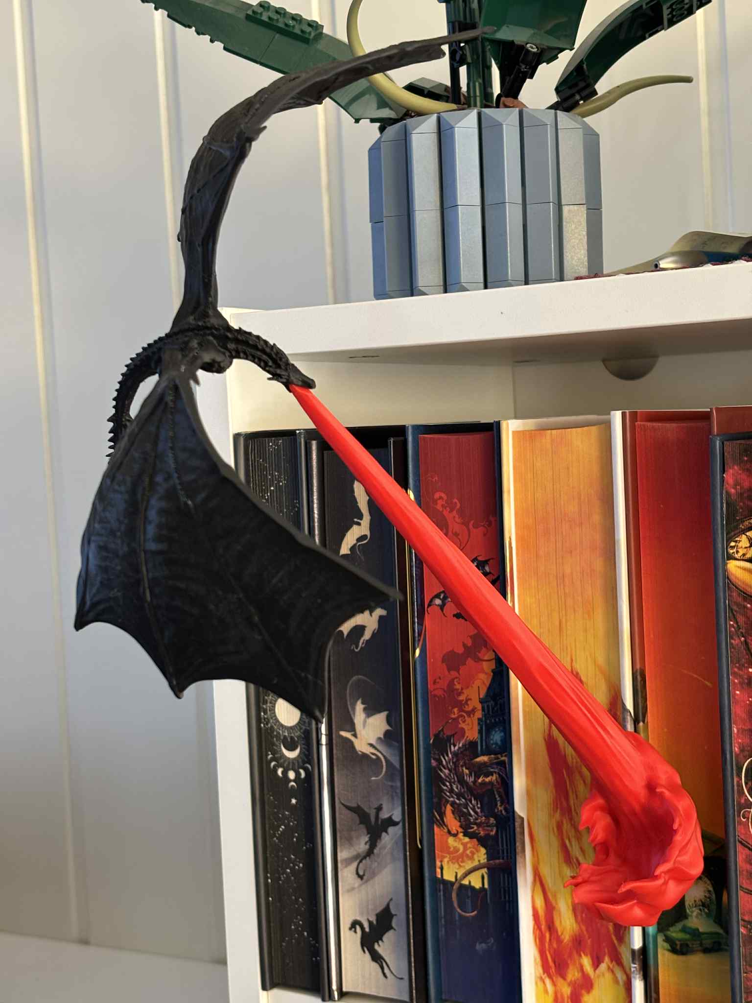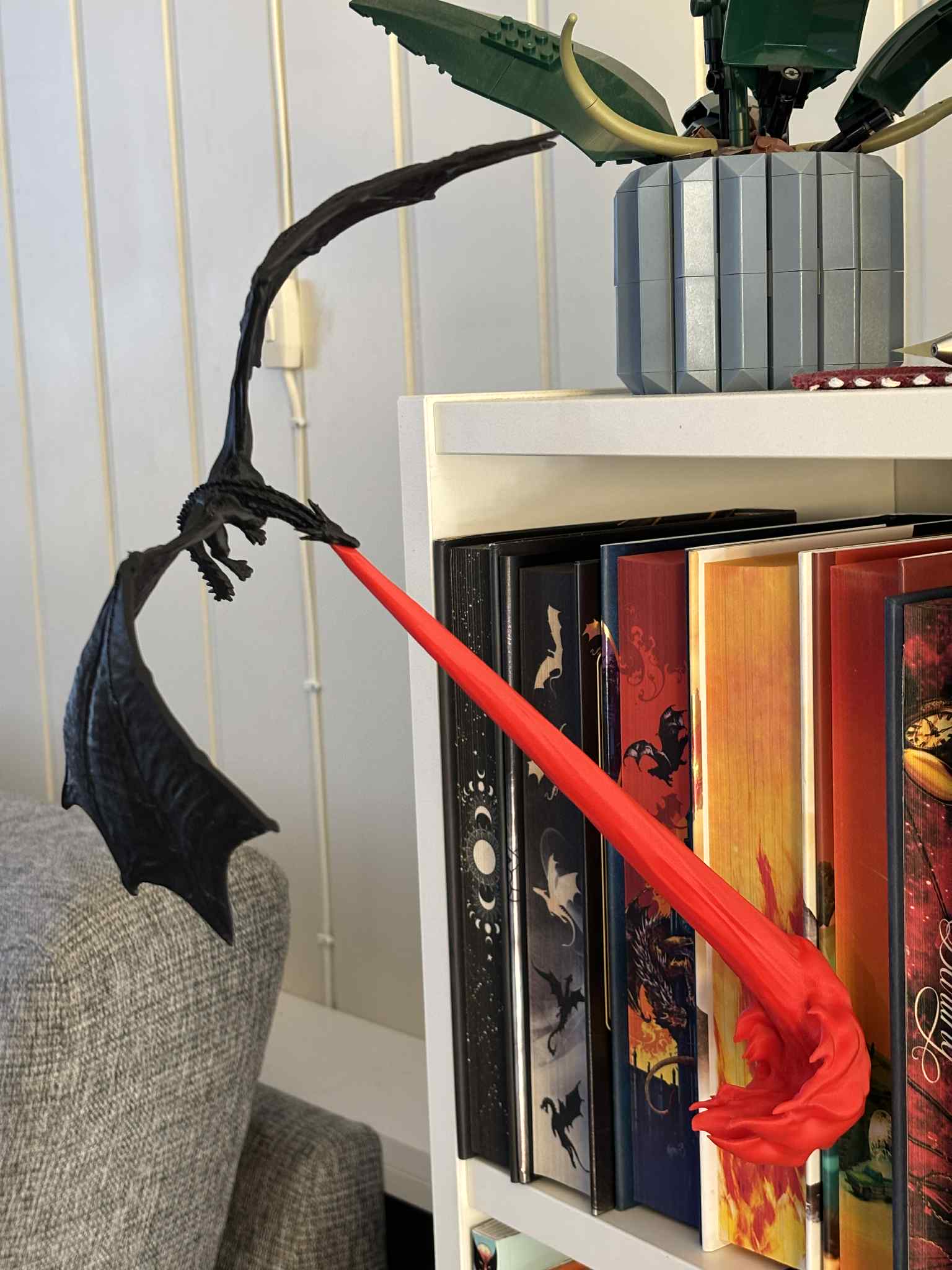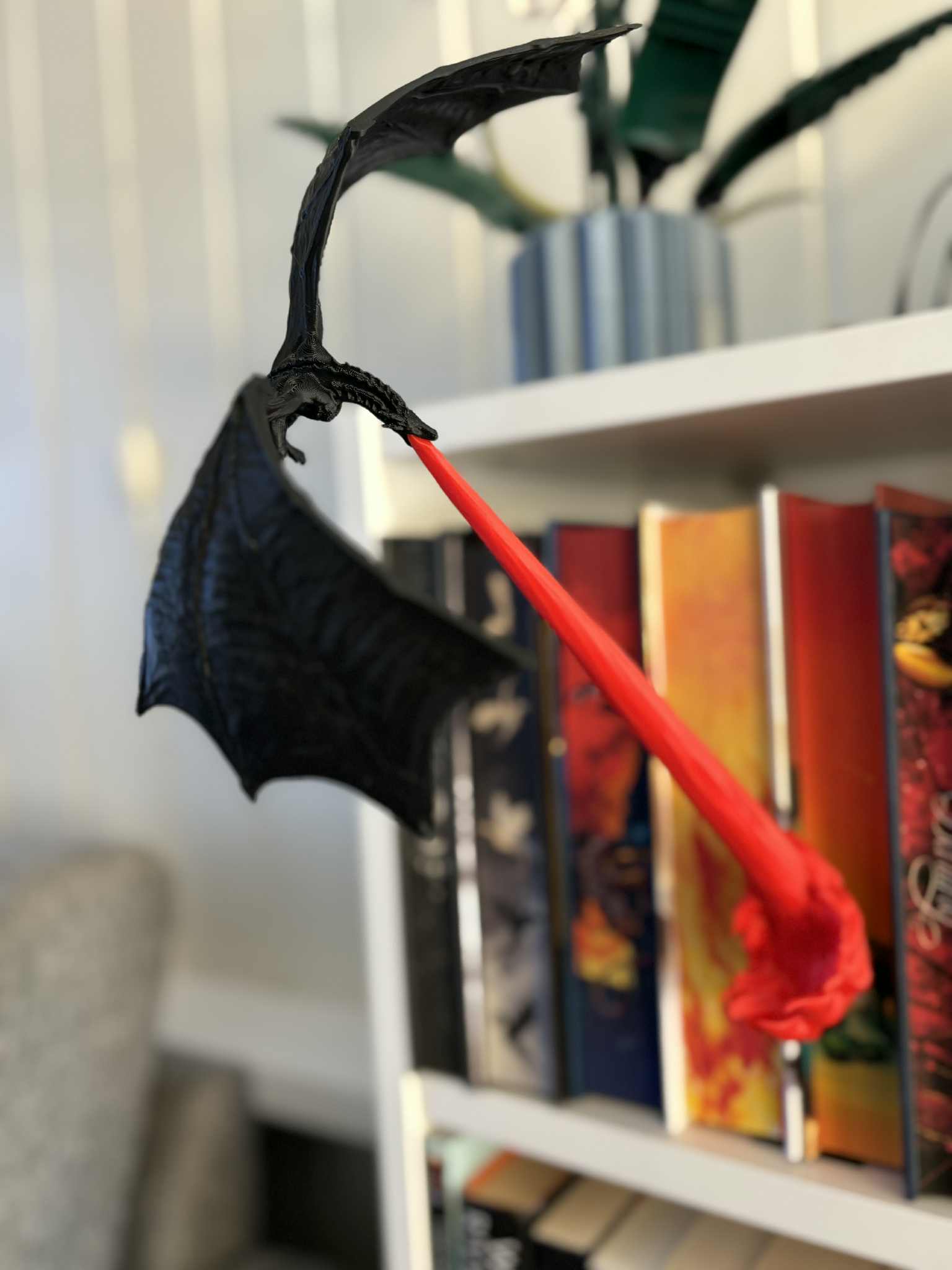 Denne flyvende ildsprutende dragen er ikke bare en bokhylledekorasjon – den er et blikkfang som gjør bokhyllen din til et eventyr i seg selv.