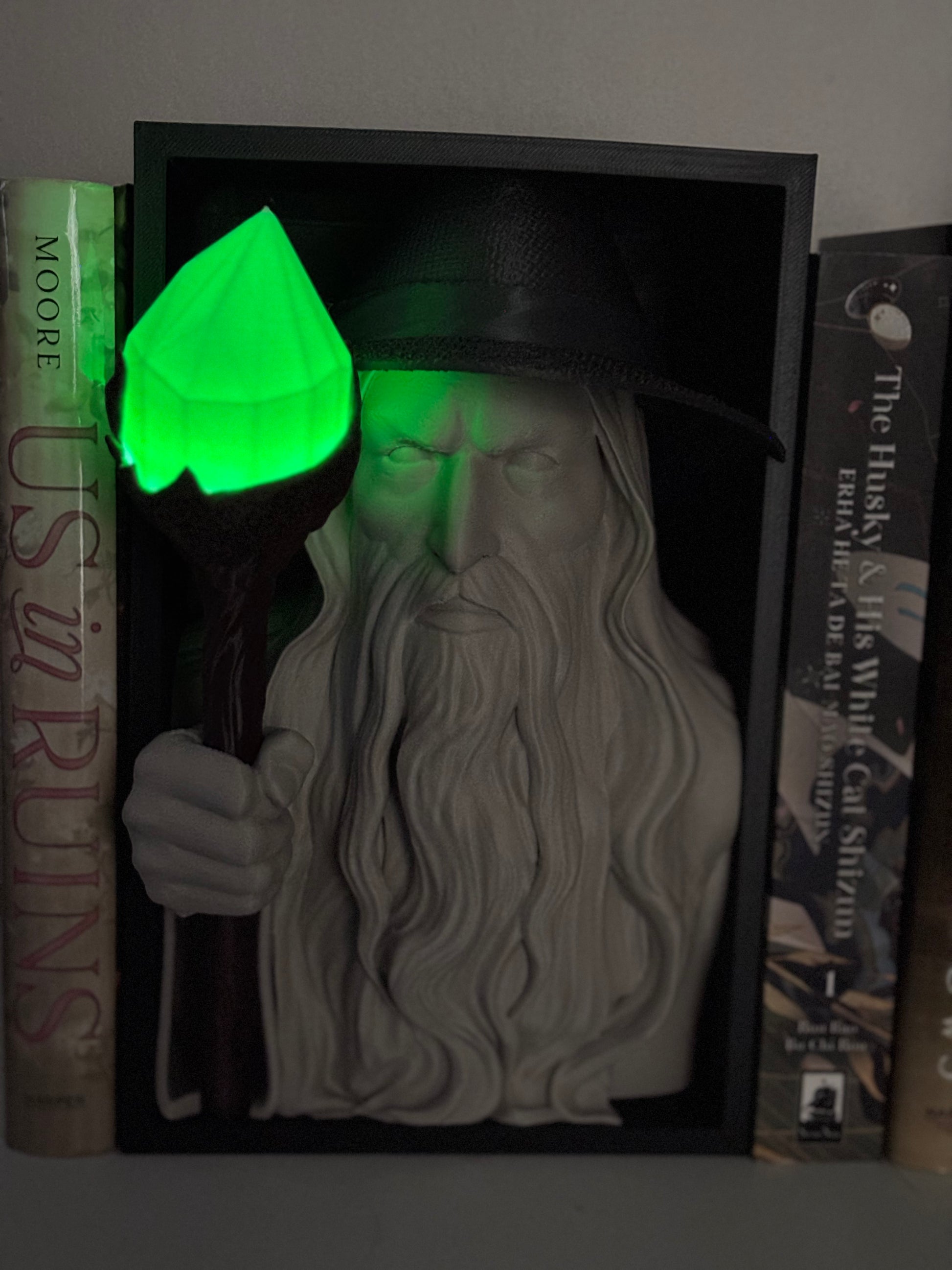 Inspirert av Gandalf fra Lord of the Rings er vi stolte av å kunne vise dere denne utrolig fine book nooken med lys! Det følger med fjernkontroll som enkelt lar deg slå av og på lyset i tryllestaven, samt skifte farge til det som passer stemningen og humøret du befinner deg i!