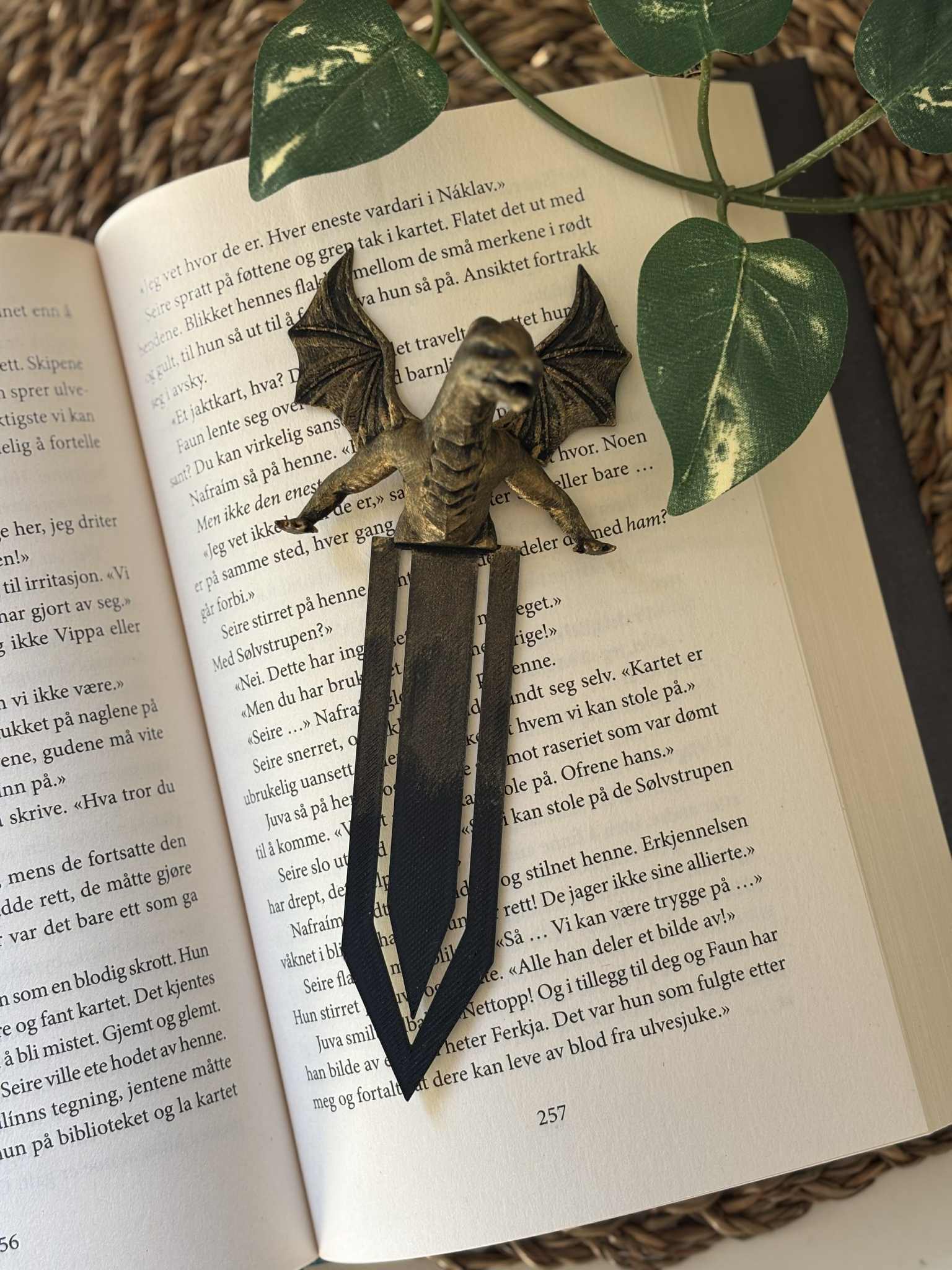 Nydelig 3D printet bokmerke med håndmalt finnish. Perfekt for alle drageentusiaster og fantasylesere!