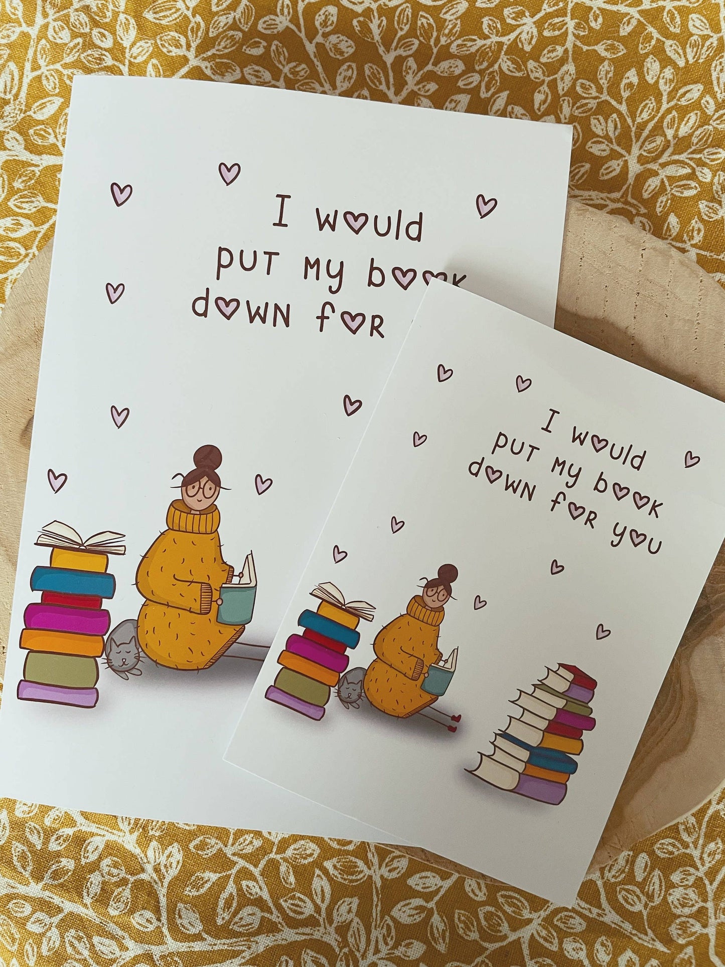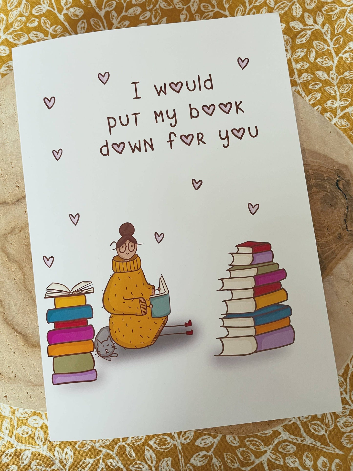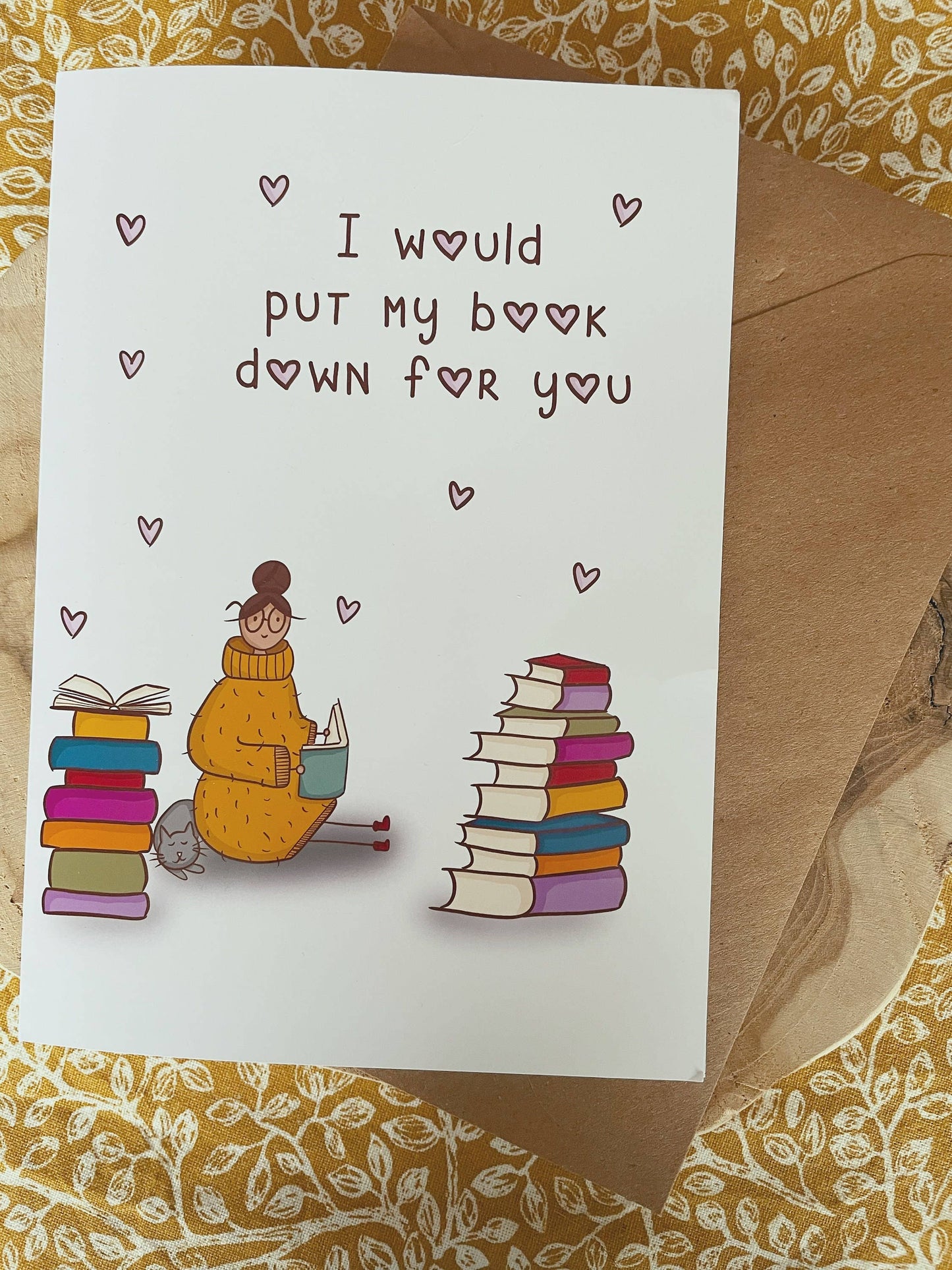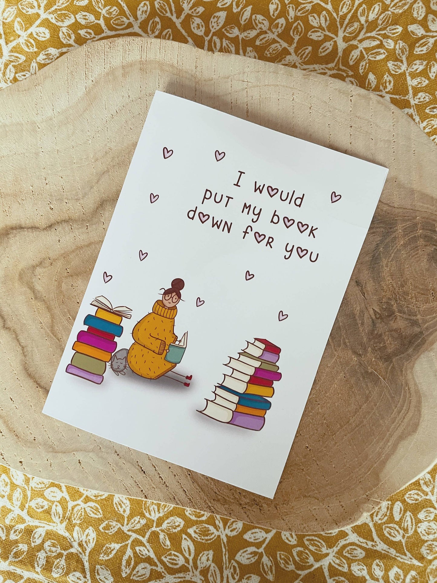 Et koselig postkort på 105 x 148mm med et koselig bookish bilde på forsiden.