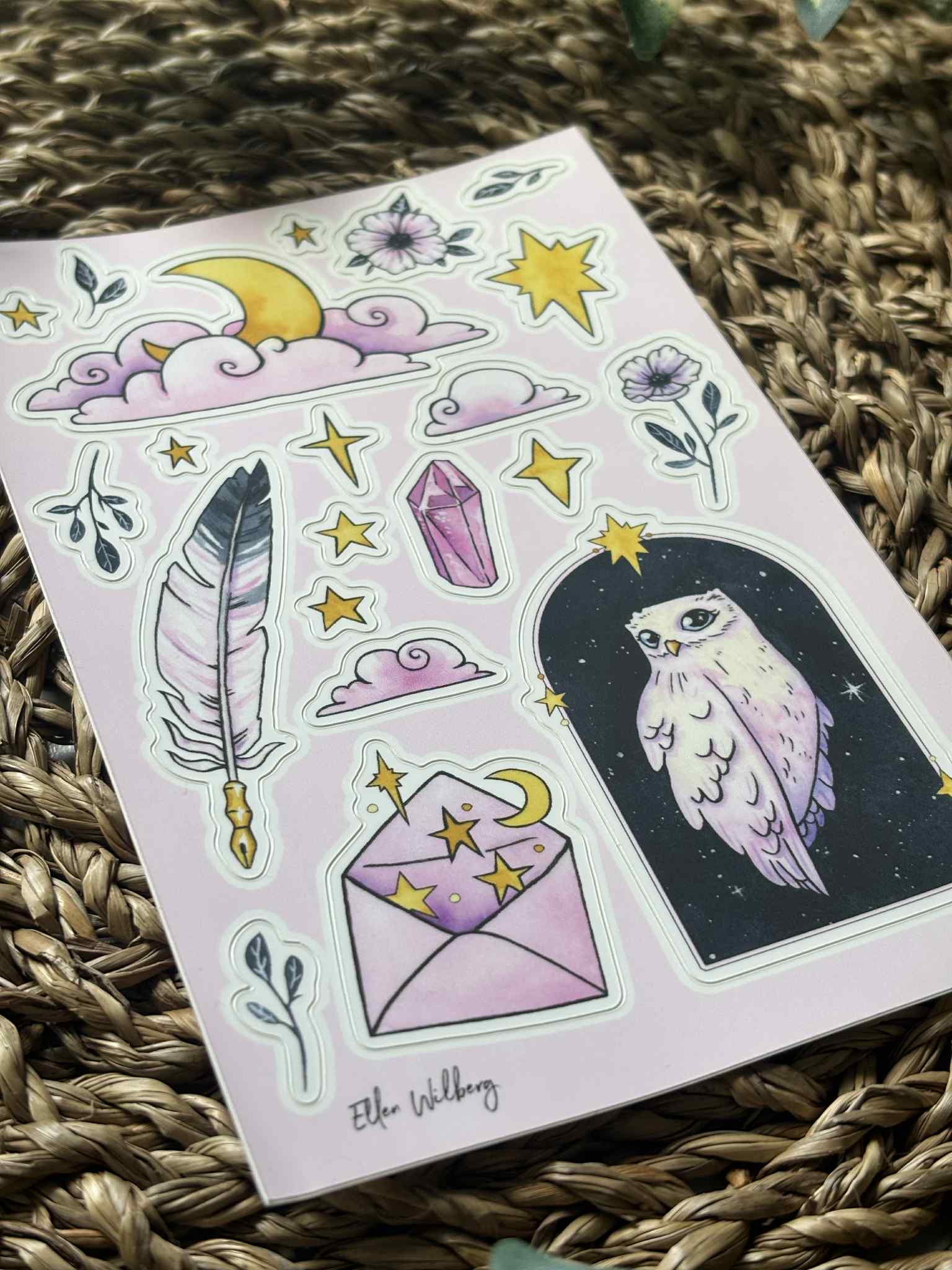 Nydelig klistremerkeark med klistremerker designet av Ellen Wilberg.