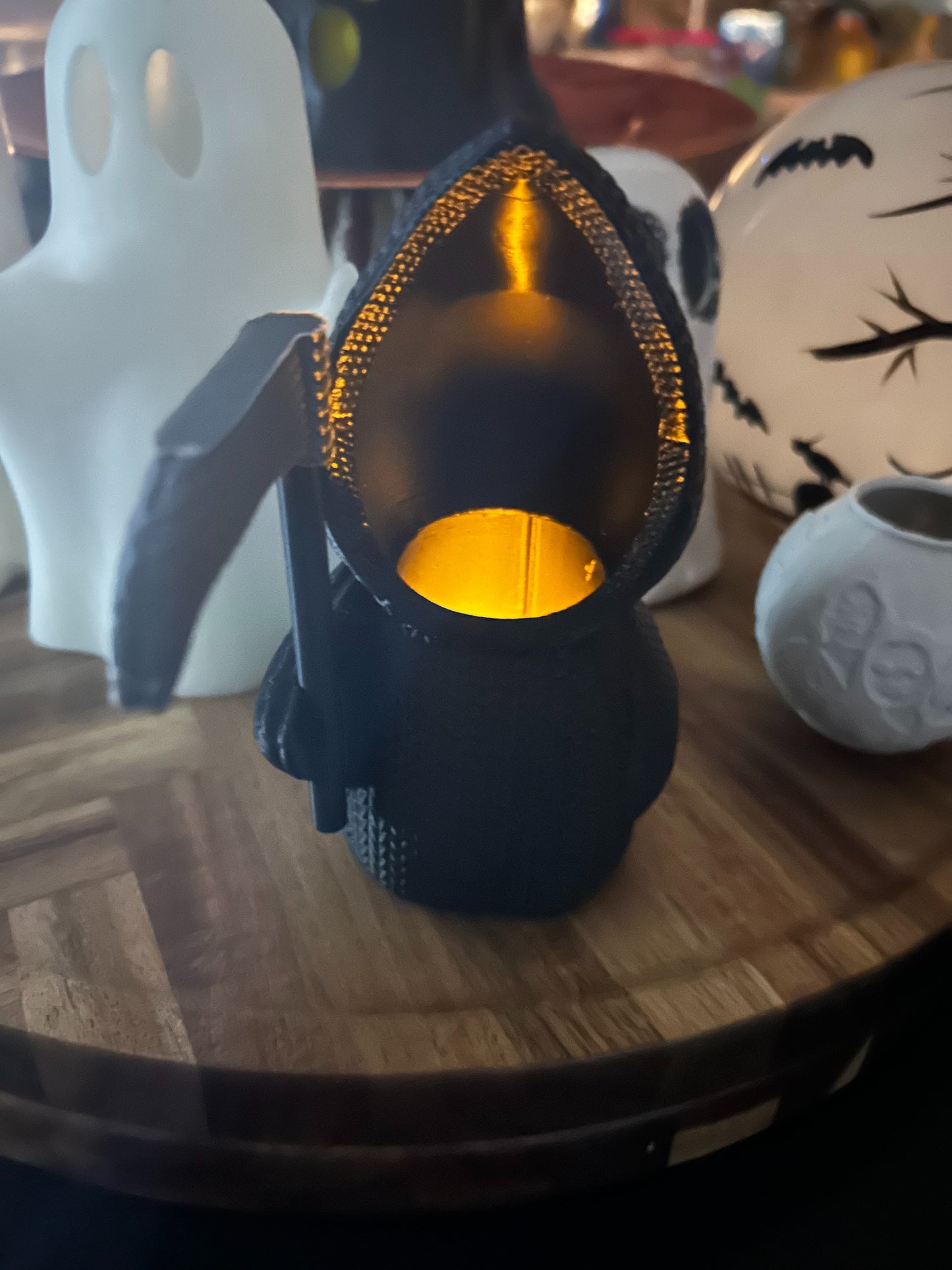 Skap en mystisk og stemningsfull atmosfære i hjemmet ditt med denne unike og supersøte 3D printede ledlyseholderen. Perfekt som pynt til Halloween, fantasy-hylla, eller som et litt annerledes innslag i bokhyllen eller stua.