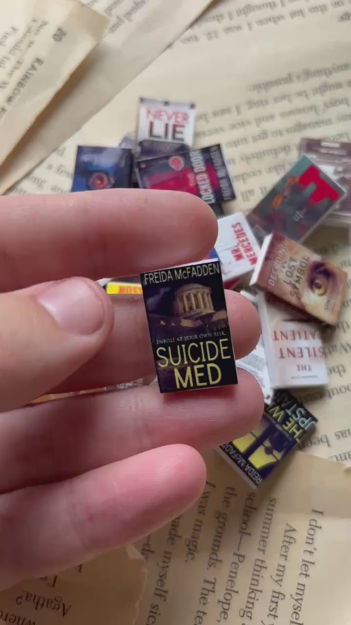 Hver bok er 3D-printet og har et vinyltrekk med bokomslag fra ekte bøker innenfor sjangerne mysterie, skrekk og thriller. Perfekt som dekor, gaver eller små skatter til bokhylla, dioramaer, boknooks eller dukkestuer.