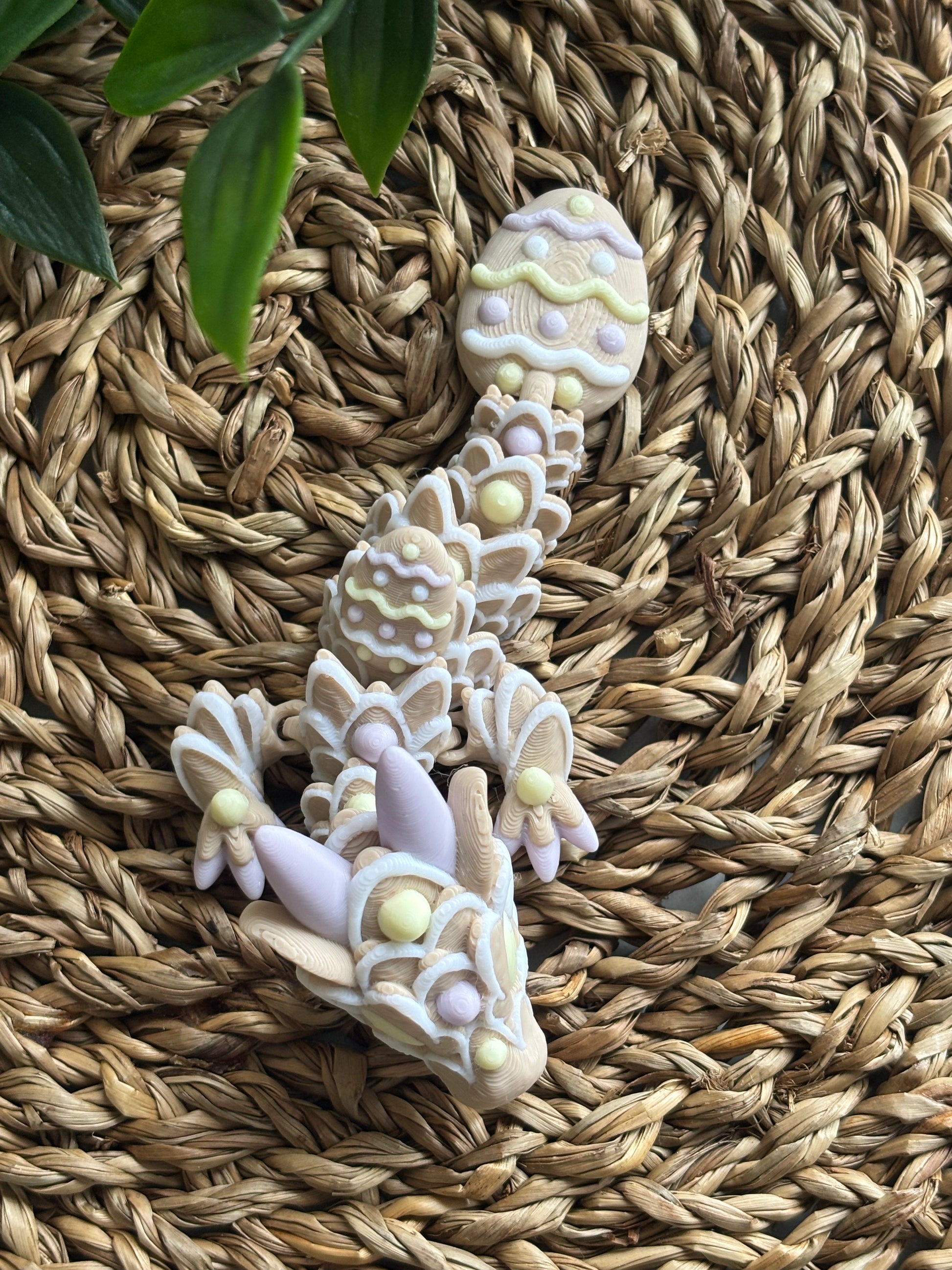 Denne søte og fleksible mini påskedragen er 3D-printet i flere bevegelige deler og laget for å være både beroligende å fikle med og nydelig som dekor. Med myke pastellfarger og påskeinspirerte detaljer passer den perfekt som pynt i bokhylla, på skrivebordet eller oppå en åpen bok – akkurat som på bildet!
