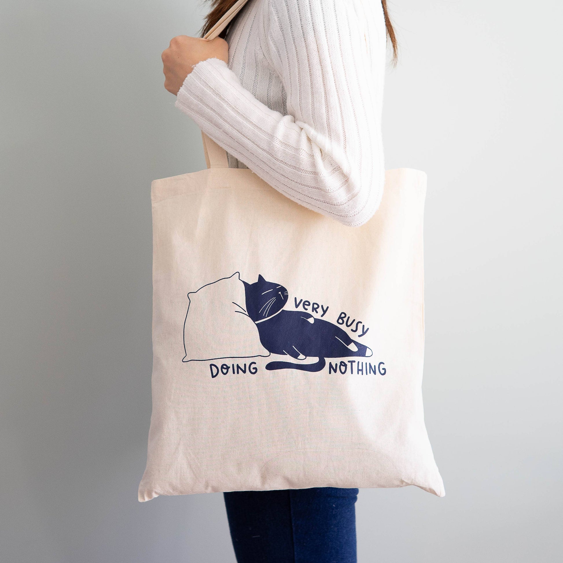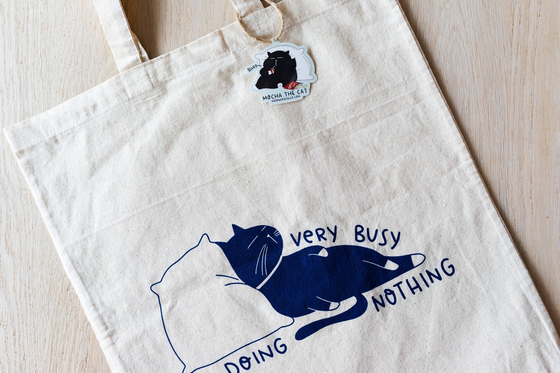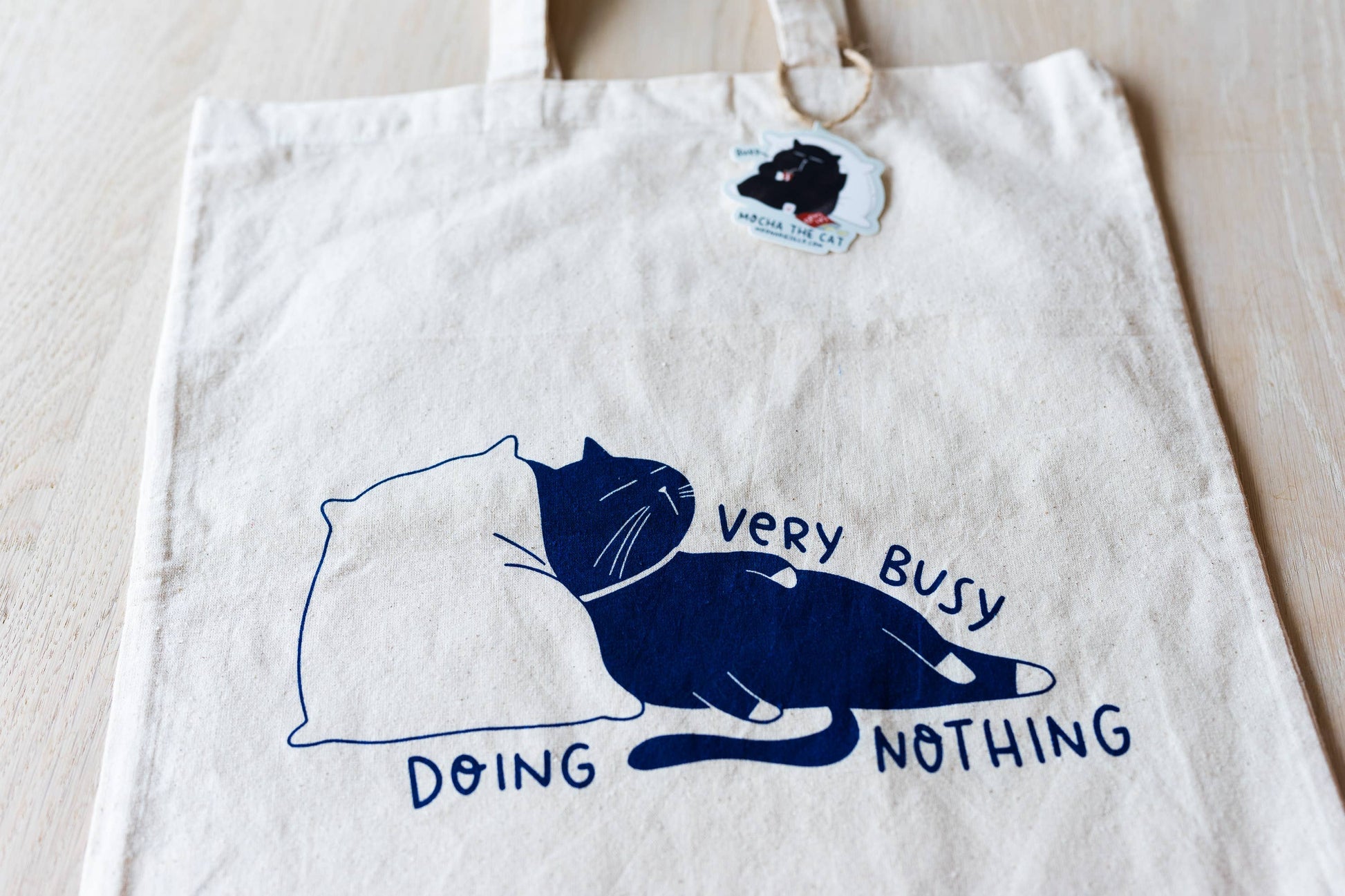 Bær med deg det viktigste med en dose humor og avslapning i dette «Very Busy Doing Nothing»-handlenettet, med den avslappede katten Mocha!