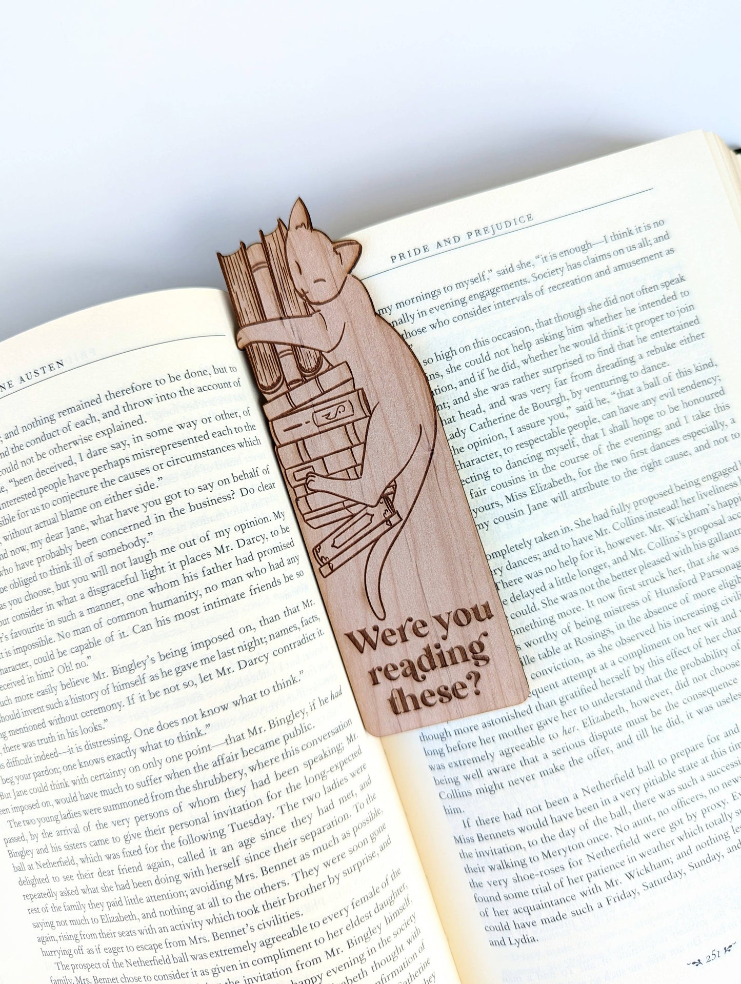 Kjøp deg et unikt bokmerke i tre inspirert av søte katter og bøker!
